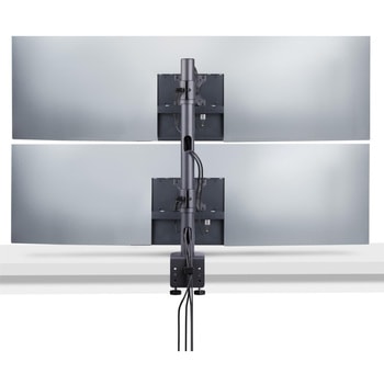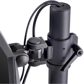 ケーブル管理機能:作業スペースをすっきりと整理できるケーブル管理システムを搭載した2画面対応モニターマウント。ケーブルを5cmのポール内に収納し、外観をシンプルに保ちます。耐久性に優れたパウダーコーティング仕上げ