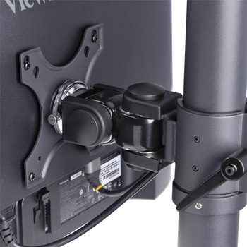 調整可能な設計:69.6cmのポールに沿った高さ調整、上下左右±90度の角度調整、および360度回転が可能で、縦横両方の画面配置に対応。工具不要でポールを中心にモニターマウントの回転が可能