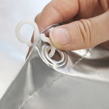 本体:塩化ビニル樹脂、Sカン:ポリアセタール樹脂、ハトメ:アルミニウム、防カビ剤:有機系