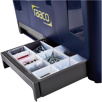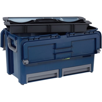 付属品:中皿×1枚、インサート×7個、引き出し×2個。収納に便利な中皿付でトレーとしてもご利用いただけます。引き出しが2つございます。ハンドル位置でフタの開閉を制御する安全設計です。パーツトレーが7個付属しており、中皿や引き出しで仕切る為に使用することが可能です。別売アクセサリー『パーツケーストレー55及び27』シリーズで内容物に合わせたカスタマイズが可能です。踏台として使用可能です。積み重ね可能です。
