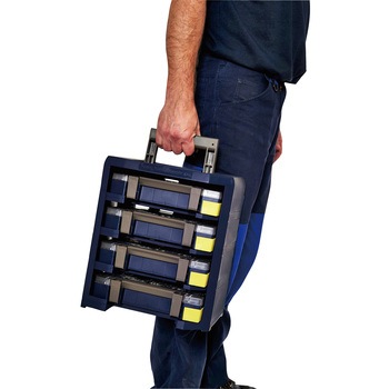 パーツケース4個が収納出来る車載、保管、持ち運びに便利なハンディボックスです。積み重ね可能です。100kgまで簡易的な踏み台、椅子としても使用できます。パーツケース138314に対応しております。