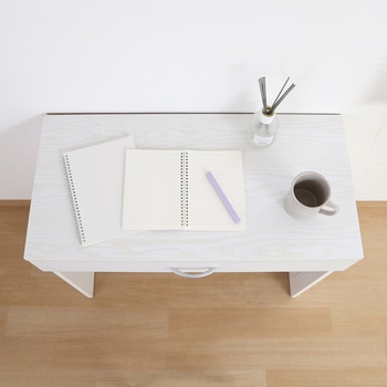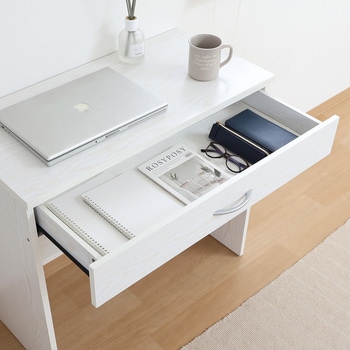 引き出しには筆記用具などがスッキリ収まります。スライドレールなので開け閉めもスムーズです。
