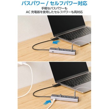USBハブ本体への給電専用USB Type-Cポート×1を搭載。手持ちのAC充電器を接続することで、セルフパワーUSBハブとして使用できます。