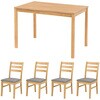毎日の食卓に、ちょうどいい広さと整ったかたちを。長方形テーブルとチェア4脚を組み合わせた、ナチュラルで使いやすいダイニング5点セットです。天板の直線的なフォルムが空間をすっきりと見せ、複数人でも向かい合って使いやすい長方形タイプ。家族の食事はもちろん、来客時にも活躍します。チェアは背中を支えるハイバック仕様ながら、アームレスで軽やかな佇まい。テーブル下にも収まりやすく、見た目もすっきり整います。セットで揃えることで、統一感のあるダイニング空間が完成。ナチュラルで北欧テイストの食卓を、無理なく取り入れられるダイニングセットです。