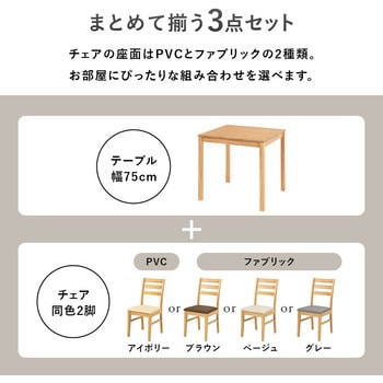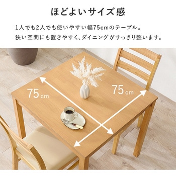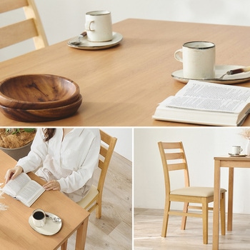 無駄のないかたちが、暮らしを整える。正方形テーブルとチェア2脚を組み合わせた、ナチュラルで使いやすいダイニング3点セットです。正方形のテーブルは、壁付けや省スペースにも取り入れやすく、1~2人暮らしのダイニングにちょうどいいサイズ感。限られた空間でも、すっきりとした印象に仕上がります。チェアは背中を支えるハイバック仕様ながら、アームレスで軽やかな佇まい。テーブル下にも収まりやすく、見た目もすっきり整います。単品で揃えるより、統一感のあるコーディネートが手軽に完成。ナチュラルで北欧テイストな食卓を、無理なく始められるダイニングセットです。