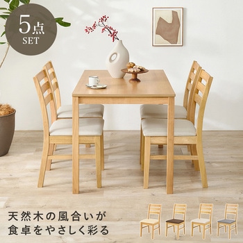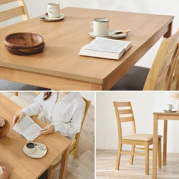 毎日の食卓に、ちょうどいい広さと整ったかたちを。長方形テーブルとチェア4脚を組み合わせた、ナチュラルで使いやすいダイニング5点セットです。天板の直線的なフォルムが空間をすっきりと見せ、複数人でも向かい合って使いやすい長方形タイプ。家族の食事はもちろん、来客時にも活躍します。チェアは背中を支えるハイバック仕様ながら、アームレスで軽やかな佇まい。テーブル下にも収まりやすく、見た目もすっきり整います。セットで揃えることで、統一感のあるダイニング空間が完成。ナチュラルで北欧テイストの食卓を、無理なく取り入れられるダイニングセットです。