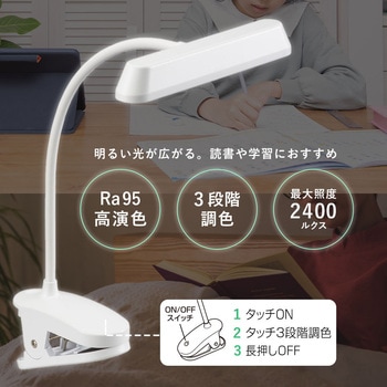 LEDクリップライト 学習用 370lm 3段階調色 Ra95 USB ホワイト