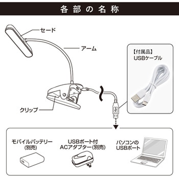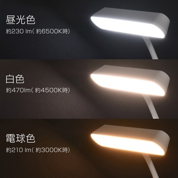 LEDクリップライト 学習用 470lm 3段階調色 Ra95 USB ホワイト