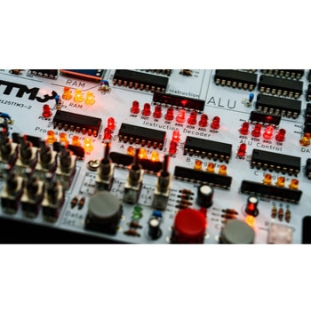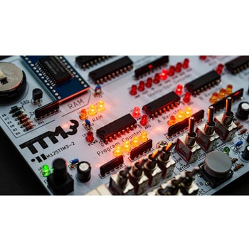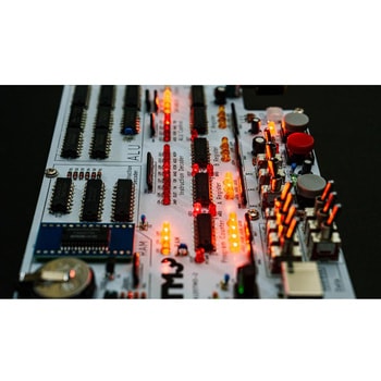 CPUの内部構造を学習するための工作キットで、書籍同梱版です。 ブラックボックスなしの純粋な回路を用いてCPUの仕組みを初歩から学べます。 完成したCPUは簡単な機械語を入力して実行可能です。 演算や命令の動作を、RGB-LED出力で体験できます。 手動クロック/自動クロックを切り替えられるので、授業・演習の進め方に合わせて使い分けができます。