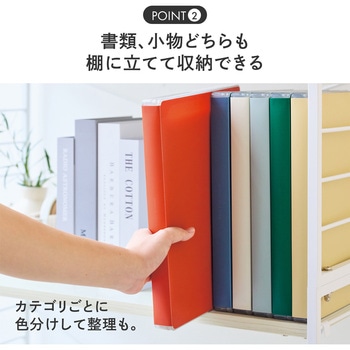 取扱説明書などの冊子をまとめて収納したり、小さなおもちゃや小物を整理して収納するのにおすすめです。本体は適度な厚みがあるので、棚に立てて収納することもできます。