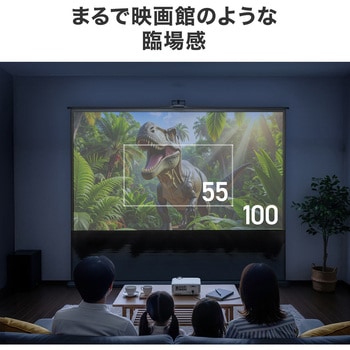 100型の16:9大画面に対応し、ビジネスシーンからホームシアターまで幅広く活用できます。