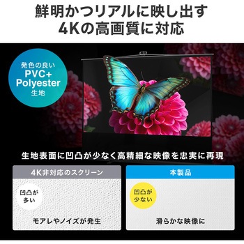 スクリーン素材に発色の良いPVC + Polyesterの生地を採用し、4K映像も鮮明かつリアルに映し出します。