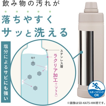 ステンレス真空2重のまほうびん。暑い季節でも冷たさをしっかりキープするから、アクティブシーンの水分補給に最適です。