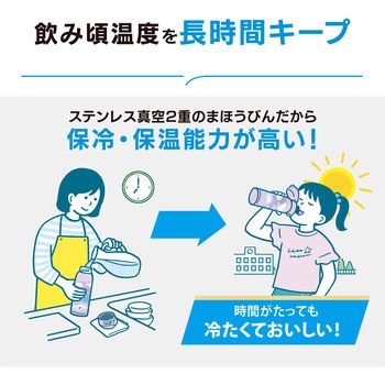 飲み物の温度を長時間キープ。ステンレス真空2重のまほうびんだから、保冷・保温力が高い!飲みごろ温度も長続き。