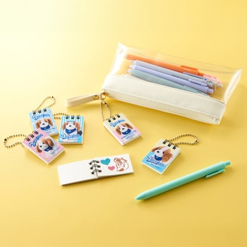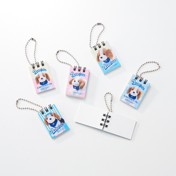 デコピンが表紙になった、かわいいミニミニサイズのスケッチブック。ボールチェーン付で、バッグやポーチに付ければ