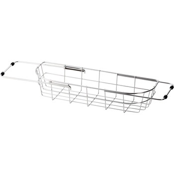 シンクにかけて使用するバスケットです。スライド式でシンクのサイズを選びません。浅型なのでバスケットの下もゆったり使えます。すべり止め付きでガタつきません。