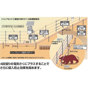 4段張りの電気さくにプラスすることでさらに侵入効果を高めます。