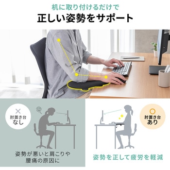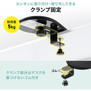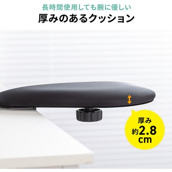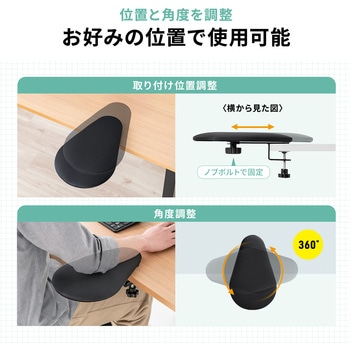 クランプ式でデスクにしっかり固定でき、工具不要で取り付けや位置調整もスムーズに行えます。クッションの向きを作業内容に合わせて変えられるため、マウス操作や筆記作業などにも柔軟に対応します。肌触りの良いポリエステル素材を使用し、長時間でも快適に腕を支えるやさしい使用感です。