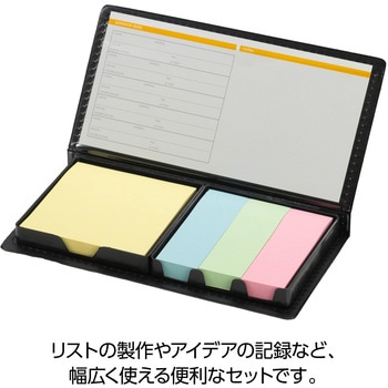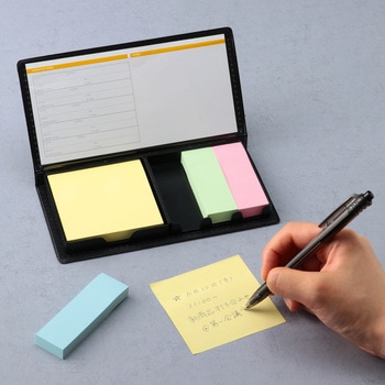 デスクワークの必需品!4種の付箋が入った便利な卓上メモセット!4種類の付箋をひとまとめにした、卓上タイプのメモボックスです。大判メモと3色のスリム付箋を一体型ケースに収納し、リスト作成や伝言メモ、インデックス管理など用途に応じて使い分けができます。コンパクトながら必要なサイズをしっかり備えており、デスク周りをすっきり整理できます。高級感のあるケース入りで、配布用ギフトや展示会配布品にも適しています。