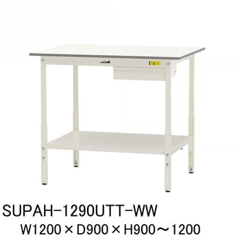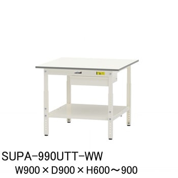 25mmピッチで高さ調整可能!シンプルで丈夫な使いやすい高さ調整式作業台です。収納に便利な引き出し付き。足元には全面棚付き。