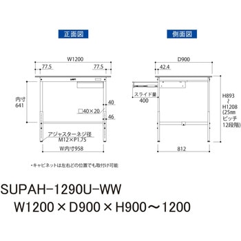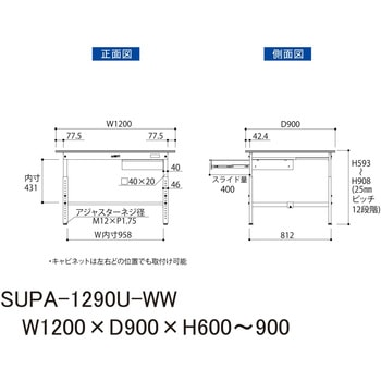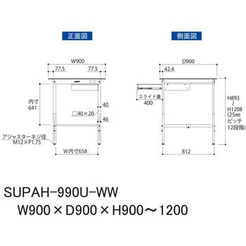 25mmピッチで高さ調整可能!シンプルで丈夫な使いやすい高さ調整式作業台です。収納に便利な引き出し付き。