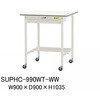 軽作業におすすめのキャスター付汎用作業台!長尺物の収納に便利なワイド引き出し付き。足元には半面棚付きです。