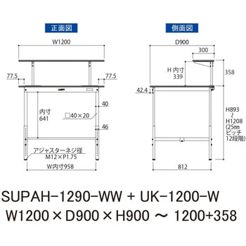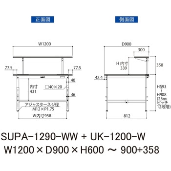 架台と合わせると総高さは作業台高さ+358mmとなります。