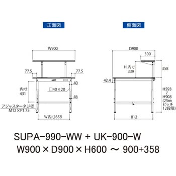 高さ調節範囲(天板面まで):高さ600mm~高さ900mm調整タイプと、高さ900mm~高さ1200mm調整タイプの2種類。