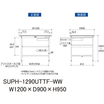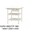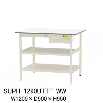軽作業におすすめの汎用作業台!収納に便利な引き出し付き。さらに取付高さを調節できる中間棚と足元に位置固定の全面棚付き。