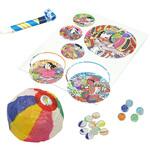 材質:紙、ガラスなど。サイズ:紙風船:約Φ16cm、メンコシート:190×260mm、ビー玉:約Φ15mm、おはじき:約Φ15mm、吹き戻し:約Φ15×120mm。セット内容:紙風船×1、メンコ×6、ビー玉×5、おはじき×10、吹き戻し×1